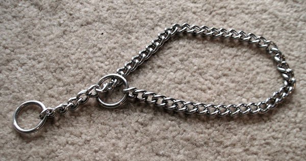 - Chain slip collar/choke chain: this metal collar serves training purposes rather than walking and playing outside. However, many dog trainers do not recommend this item. They can do great harm to your dog's neck because of their sturdiness.