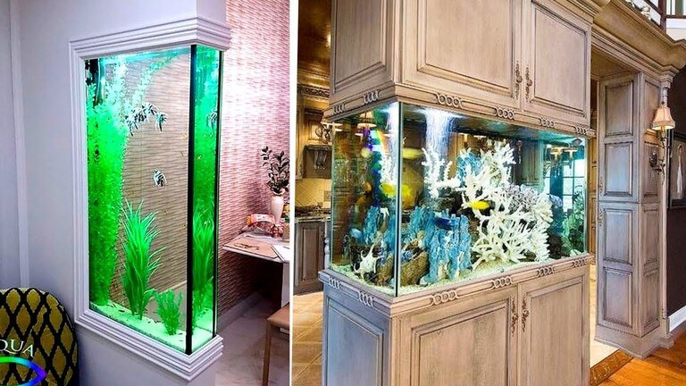 You can integrate aquarium design ideas with the walls to fit the room in a cozy way. Make sure to choose the right species of fish and other creatures in the aquarium and always pay attention to providing clean water. At the same time, combine the surrounding walls with the aquarium for a coherent look
