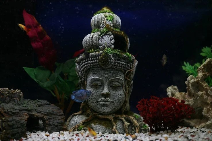 While traditional decorations like rocks and plants can certainly add interest to your tank, sculptures, and statues help create a one-of-a-kind look.