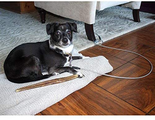 The whole purpose of the cable then is to help train your dog's patience and become more obedient. After each tethering, treat your dog with his or her favorite food. Through this, your dog will understand that all he or she has to do is patiently wait until you come back to take off the cable. They will slowly associate the cable with their rest time instead of being chained up in a negative way.