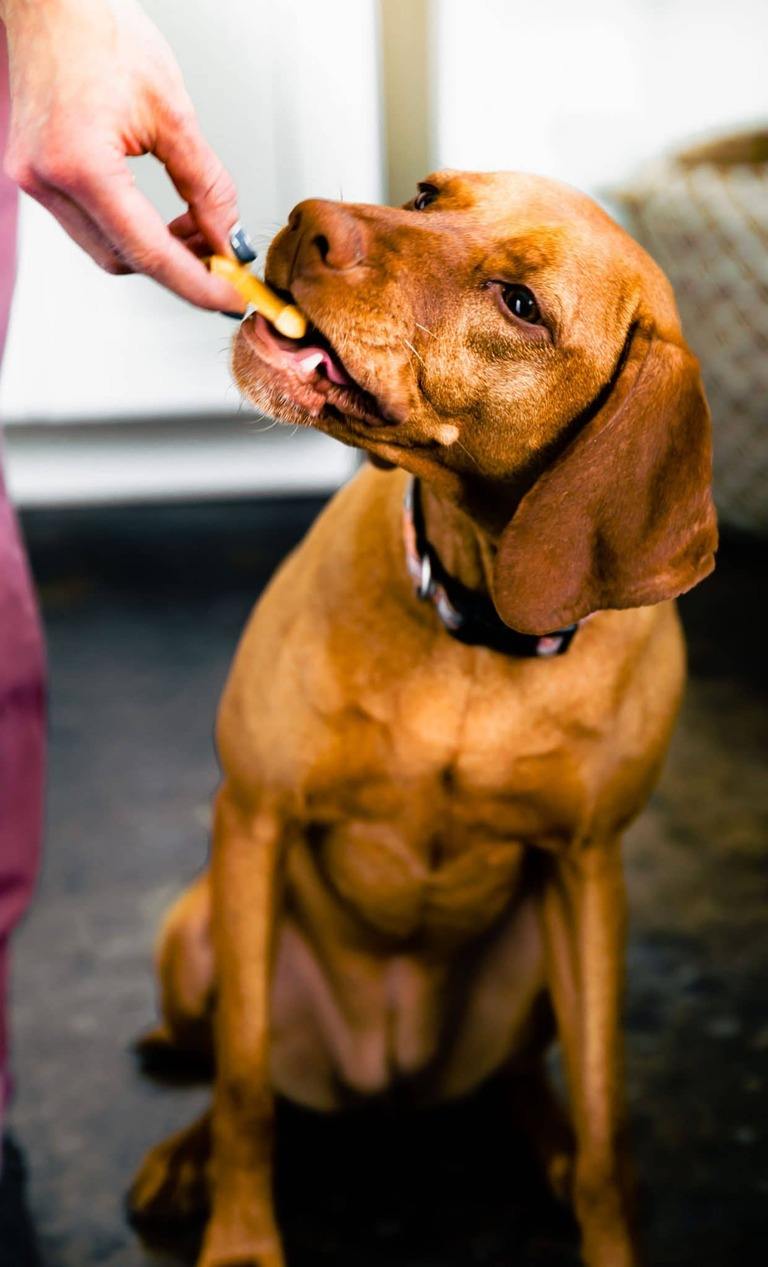 After purchasing a cable, bring it near your dog and let him or her smell it. Dogs read information about their surroundings through their noses. They smell and remember the items or people approached. The case is the same for tie-out cables. After a few minutes of getting acquainted with each other, start to treat your dog for a more calming state and to let them know the cable does no harm. It is best to train your dog to be patient before using a cable. Then slowly tether your dog with the cable. Keep in mind that you must not let the cable become intense and leave stress on your dog's neck. Continue the small treats to calm your dog down.