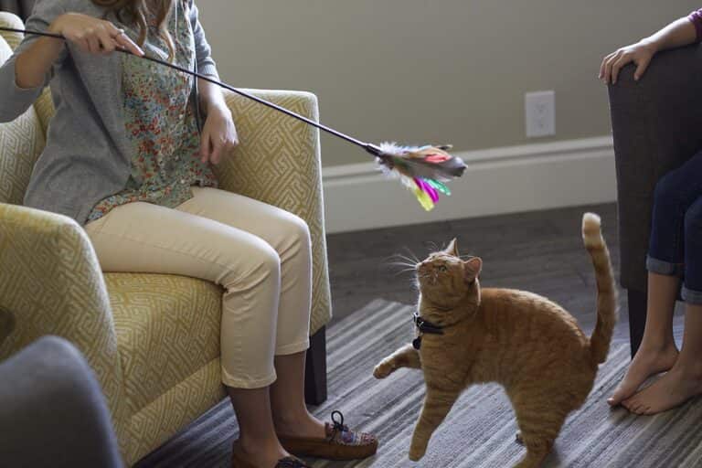 Spending time with your cat, not only to prevent possible injury — like the choking hazard caused by something as simple as a rope — but also to train and create bonding time with a friendly cat.