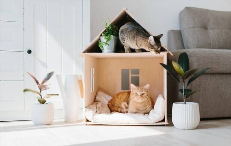 Make sure to use high-quality materials and construct a stable area for your pet to snuggle up, whether you build a cat house for the outdoors or a cat tree for the indoors. Make sure the entryway faces southeast if the home is outside to prevent any chilly winds from blowing straight in.