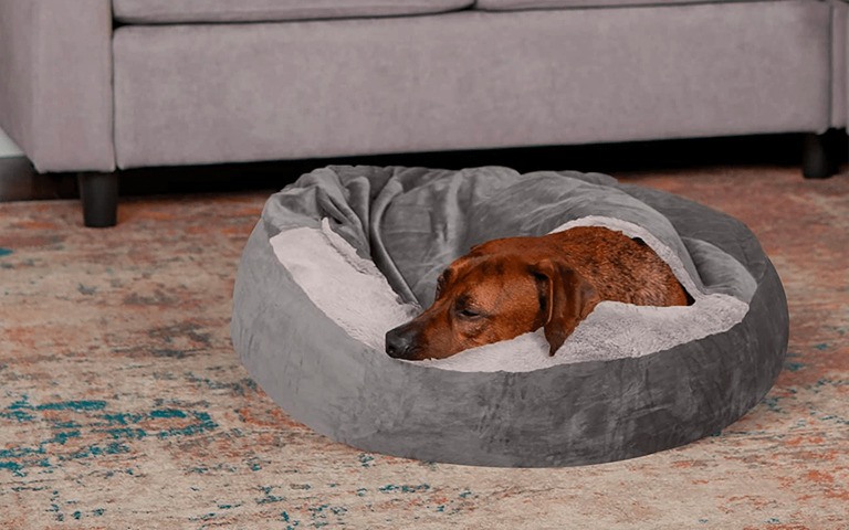 This type of bed is designed like a cave or arch for dogs who like to get in. With a semi-closed structure, it is suitable for dogs who like to keep warm, cover and create a cozy feeling when sleeping. This category is primarily intended for smaller dogs, weighing less than 20 pounds.