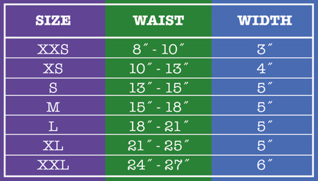 Using previously taken weight and waist measurements, find the size that best fits your dog's measurements.