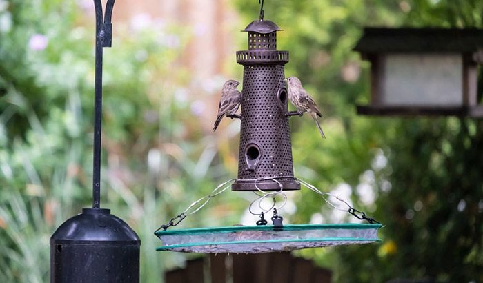 In addition, bird feeders are fixed to a pole or perch. This type of feeder will be better than those that rotate on the line. Some swinging feeders can spill seeds when the bird is moving and active. Another reason for the feeder to sway is if the wind is too strong, it causes the feeder to move and sway, causing the seeds to fall on the ground.
