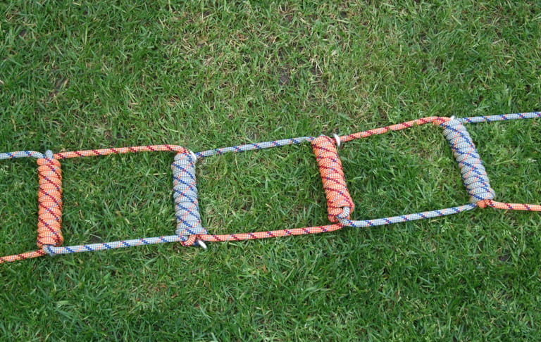 - Step 5: Just repeat the process on the remaining length of the rope. Take care to ensure that the rungs are even. Crooked steps will increase your chances of falling.