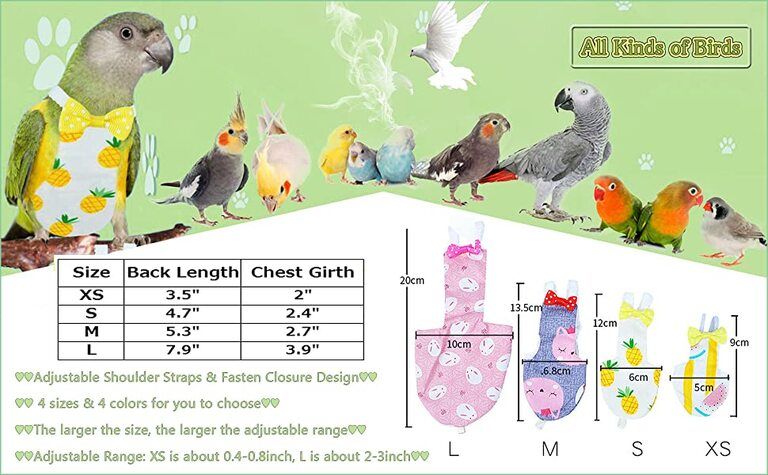 Whether you're keeping parrots or pigeons, diapers are available for every dame. It also helps birds to be stress-free.