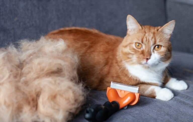 Overall, each cat and season has their own definition of what is typical for a cat that sheds. But if you believe the cat is shedding excessively, there can be a valid explanation. While there are some natural treatments for excessive cat shedding, such as increasing the diet's essential fatty acids, it's advisable to consult your veterinarian if you observe any signs of irritated skin, bald patches, or other disorders.