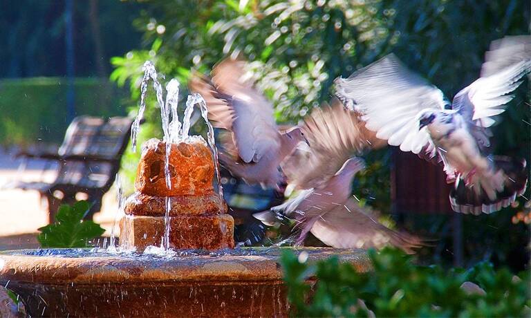 Birds usually like shelter, so placing a birdbath near bushes, trees, or other sheltered places is likely to use it. It is best to keep the birdbath out of direct sunlight so that the water is not too hot and undesirable. Always placing the birdbath in a cool, shady spot can greatly reduce the rate of water evaporation so it doesn't dry out as quickly.