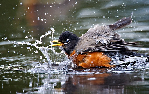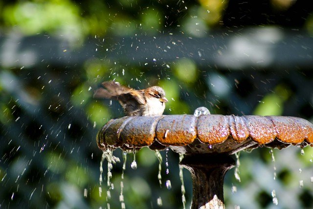Pay attention to the right depth in the birdbath. Looking at it as a shallow bowl, that's standard bird bathing.
