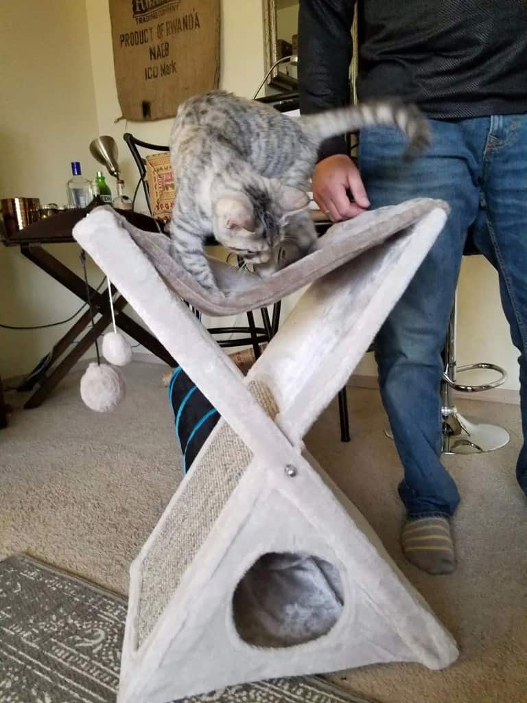 Believe it or not, a cat tree house can totally come from cardboard and materials around the house. Therefore, should your budget run low, making a tree house for your bestie is a good idea, isn't it?