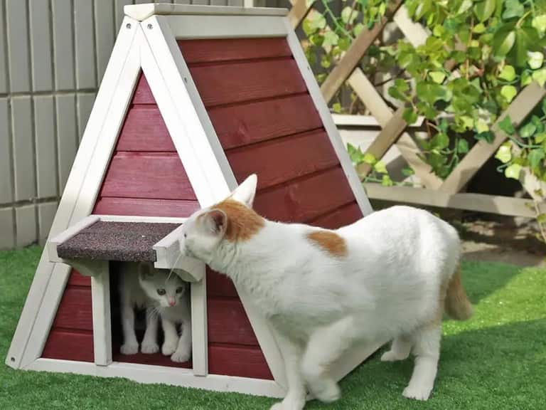 A heated cat house can look like any other type, except for its heating system inserted inside. For this house kind, you need to purchase a heating system as an additional purchase. The additional purchase should follow your budget limits, evidently. Don't forget to ensure the safety in use for your pet as well.