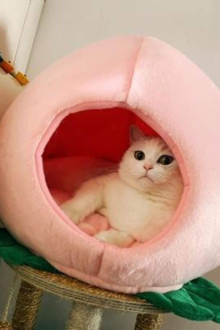 The peach house is our last recommendation for indoor cat house ideas in 2023 that you may want to save in. Houses like this are cute, warm, and cozy. They are surely one of the best gifts ever you can get for your cat. The house will look even cuter if you have some background settings.